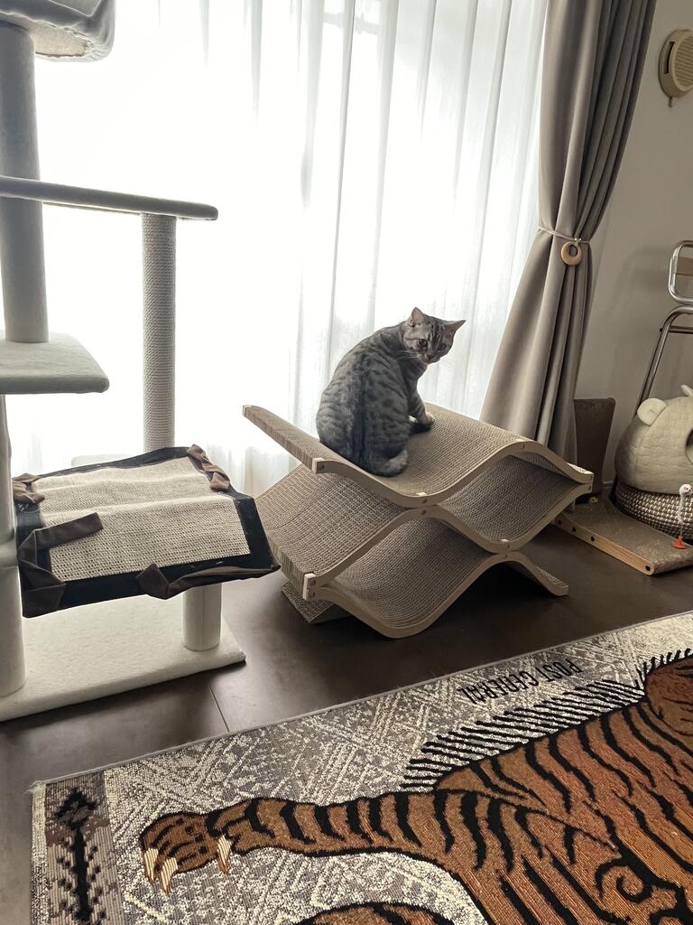 あまりにも美しいラインに感動しました。配送されるまで日にがか買ったので凄く待ち遠しかったです。組み立ては簡単でした。思ったより小さいのにびっくりしました。2匹の猫達は大喜び!部屋にも馴染んでインテリアとしても気に入ってます。