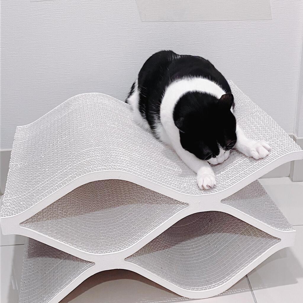 黒猫と白の爪とぎがとても素敵です!置いた途端に